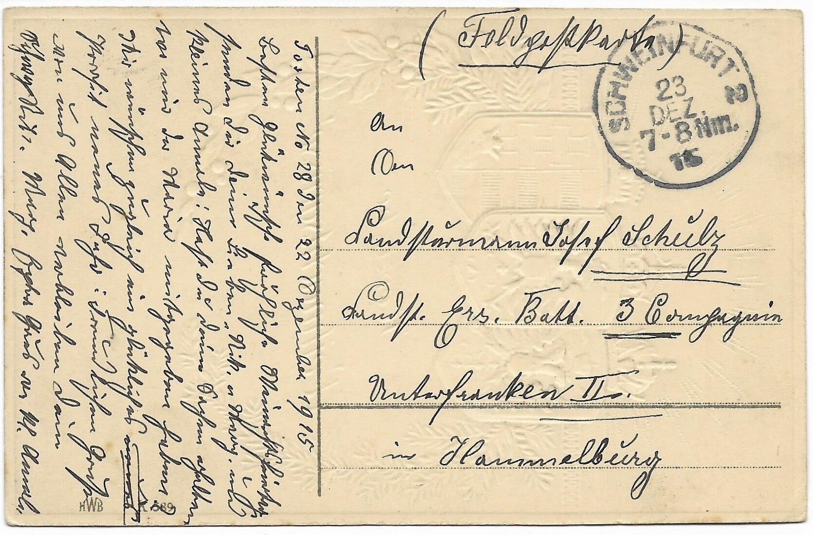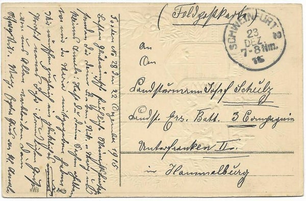 Sent before Christmas 1915 Ers.Batl 3.