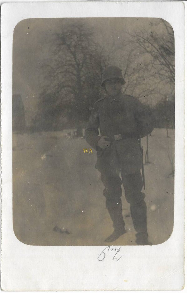 Photo card of a German soldier with M16 steel helmet and bayonet!