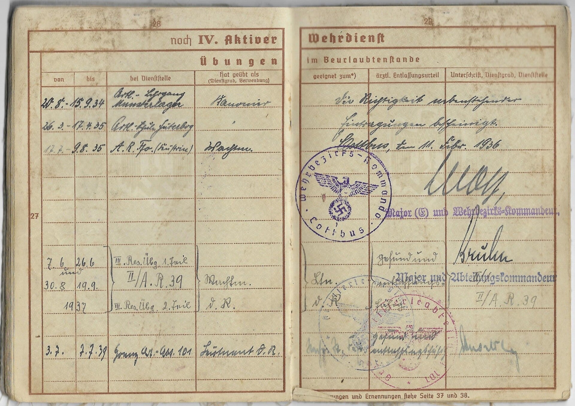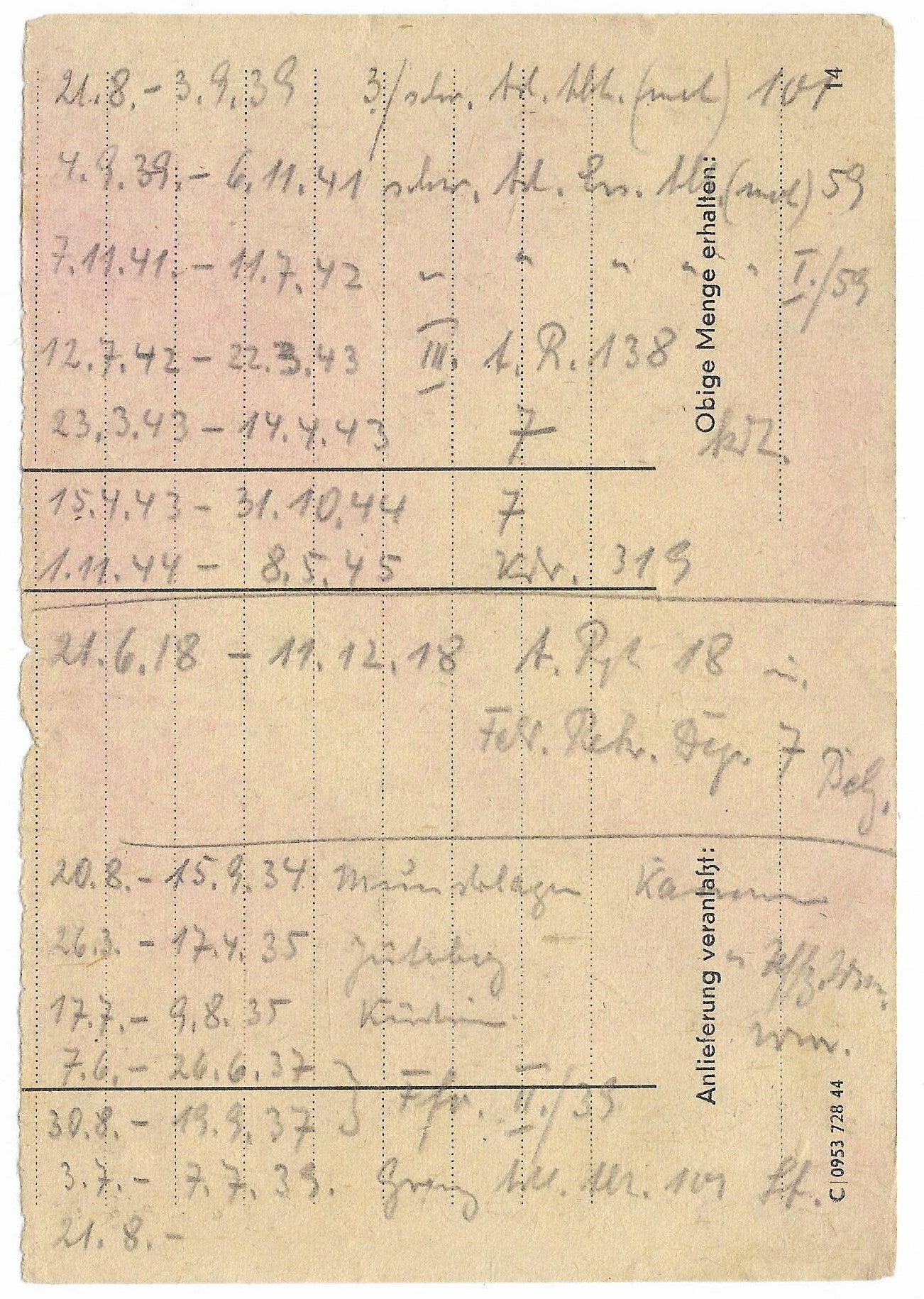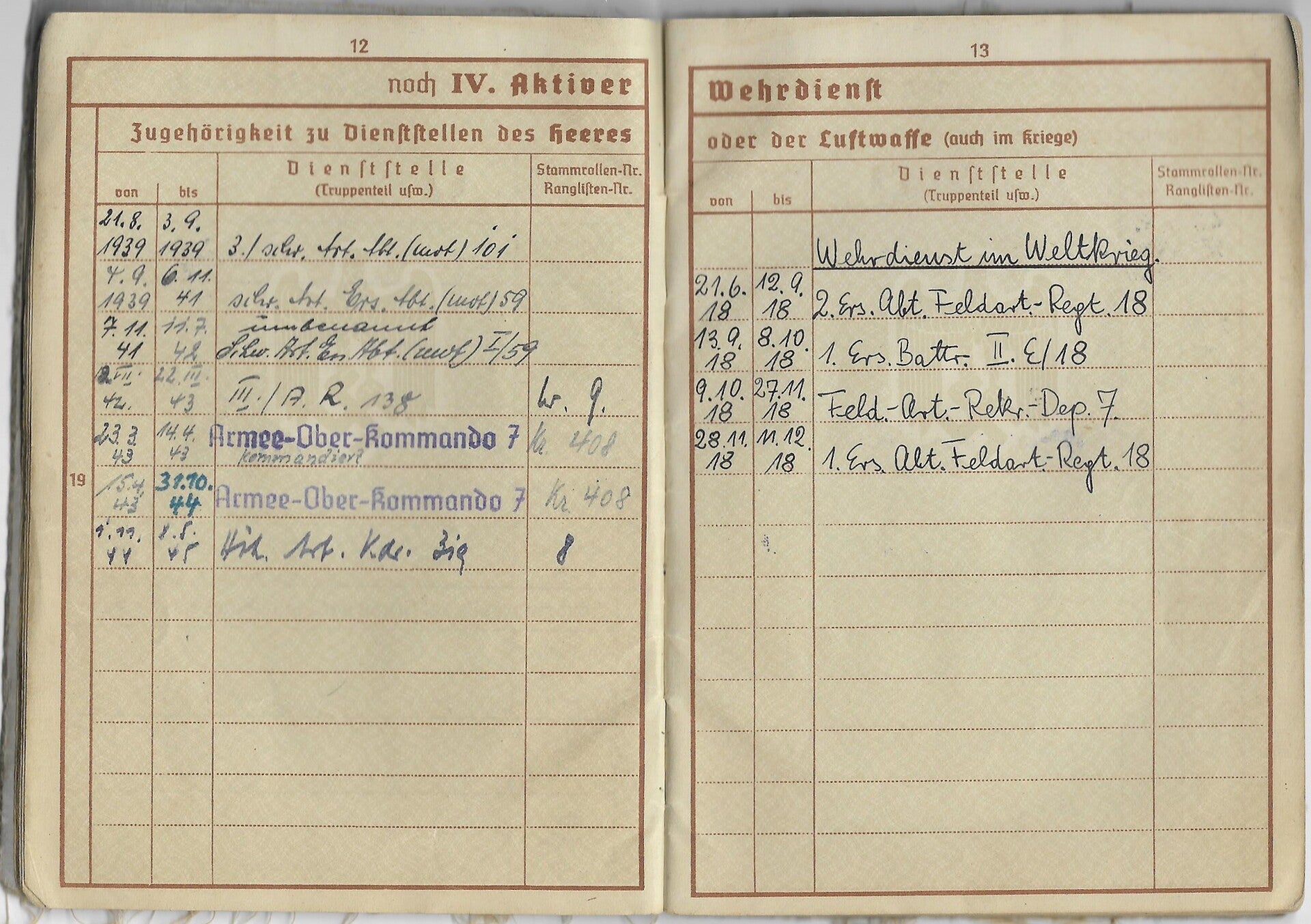 He fought in World War I in the last year of the war, 1918. He served with an Artillery regiment here. Active in the Reichswehr in the early 1930s.