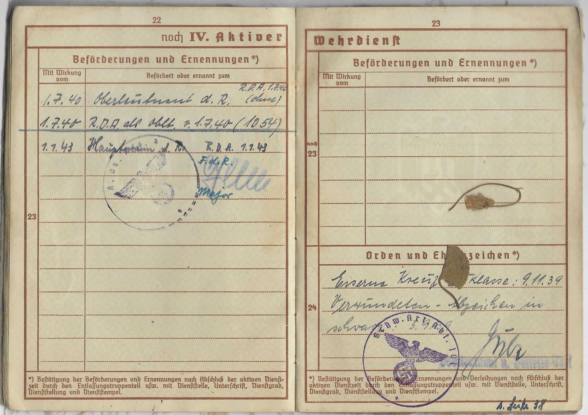 On 20 April 1945, he received the Kriegs Verdienst Kreuz 1st class with swords.