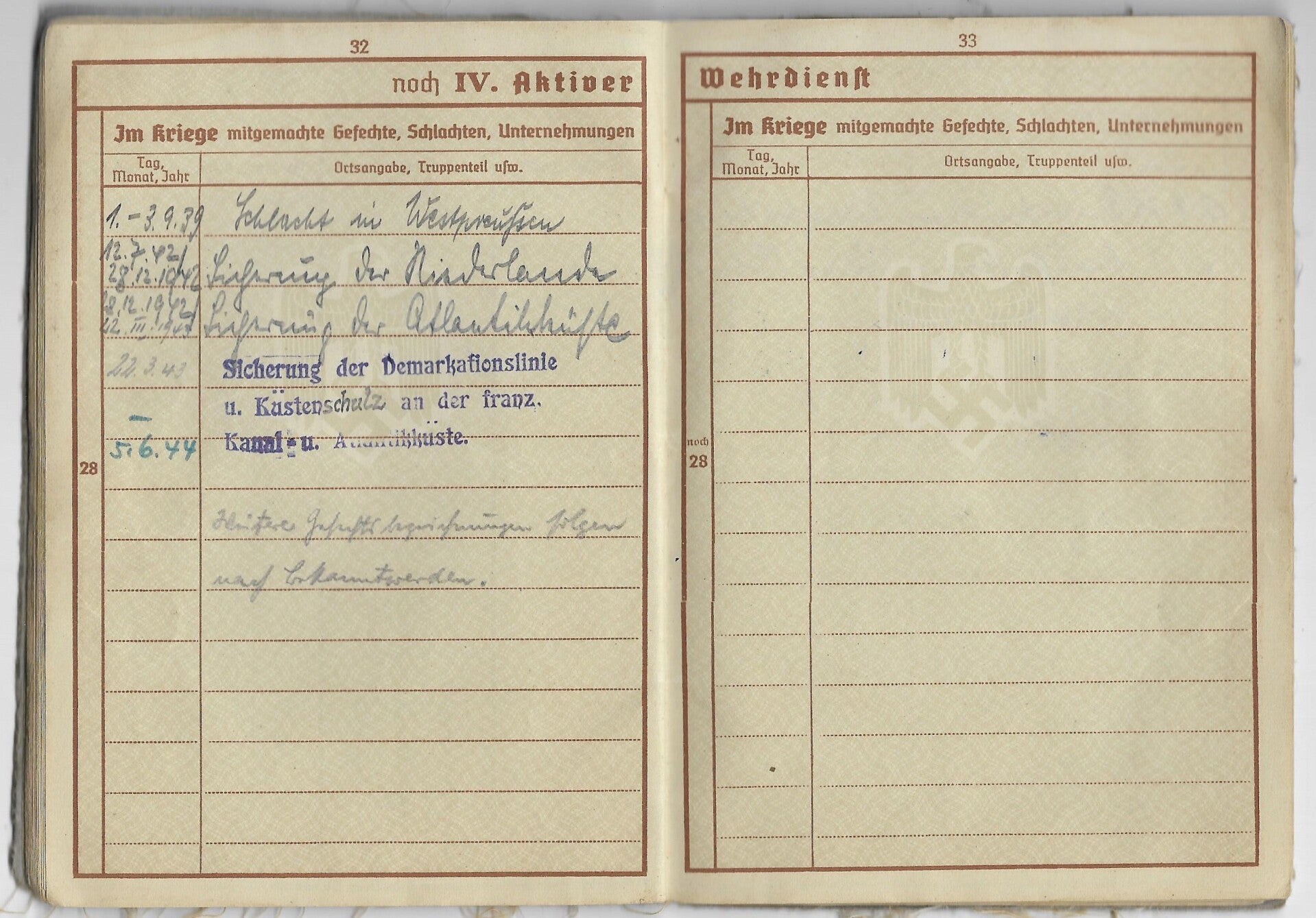 From 22-3-1943 to 5 June 1944 stationed at the French Atlantic Wall.