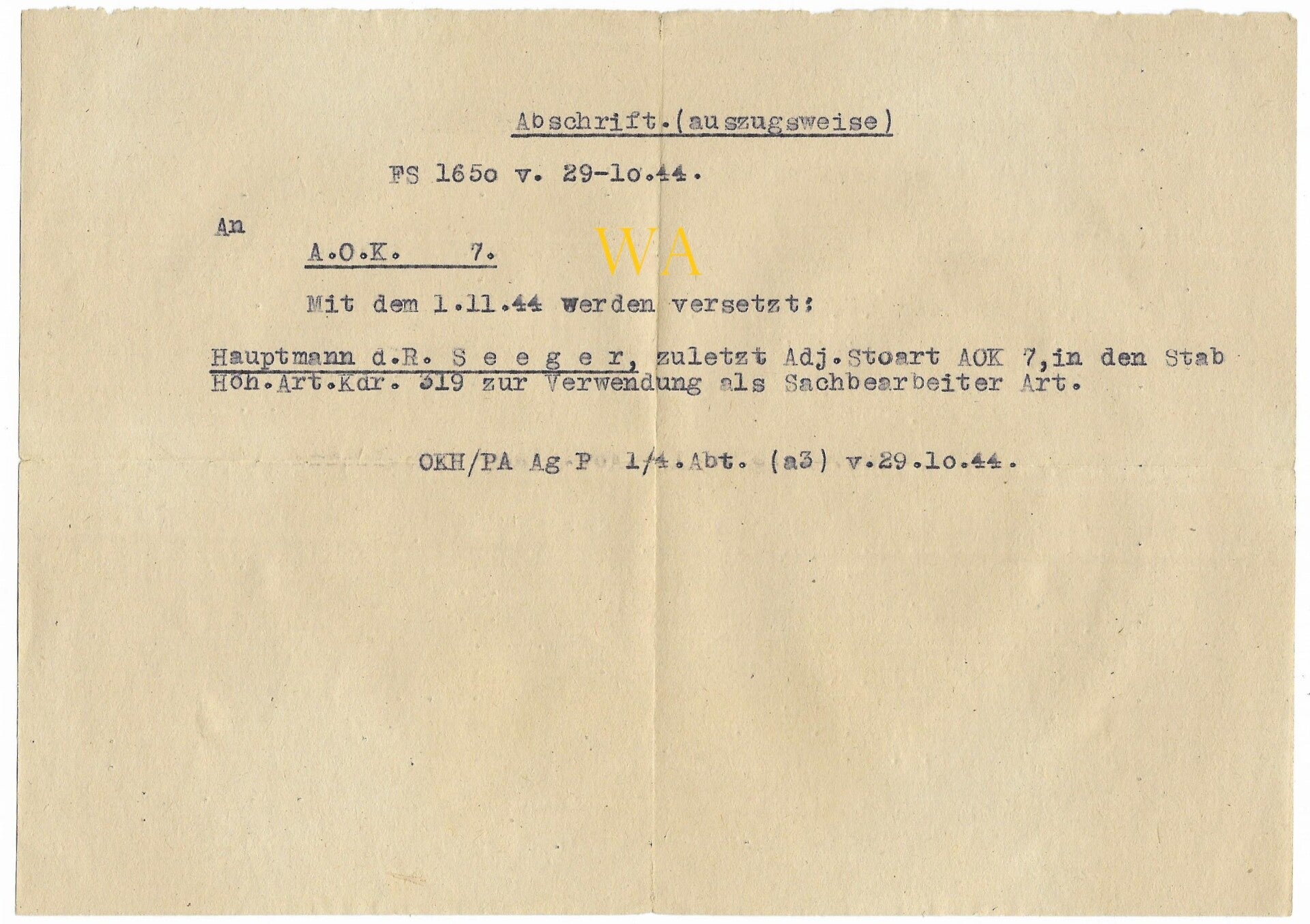 From 12 July 1942 to 22 March 1943 stationed in Artillery Regiment 138 in the Netherlands.