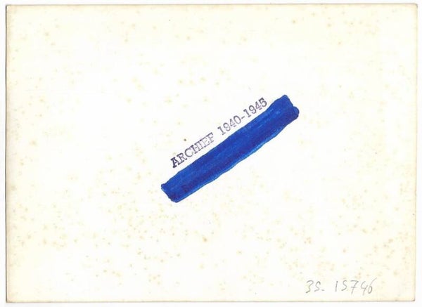 The stamp 'archive 1940-1945' was added after the war by the previous owner. This one varnished away his name with blue marker.