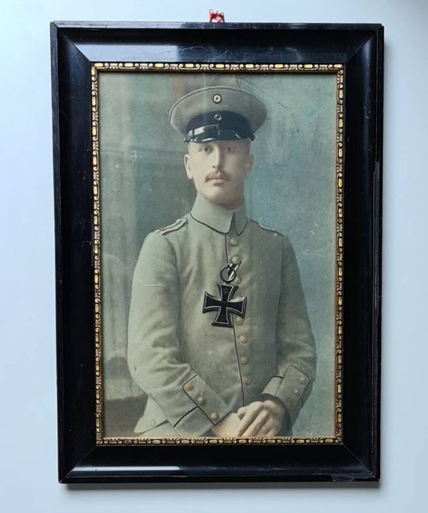 14-18 : Picture in frame with Iron Cross ! Unique item.