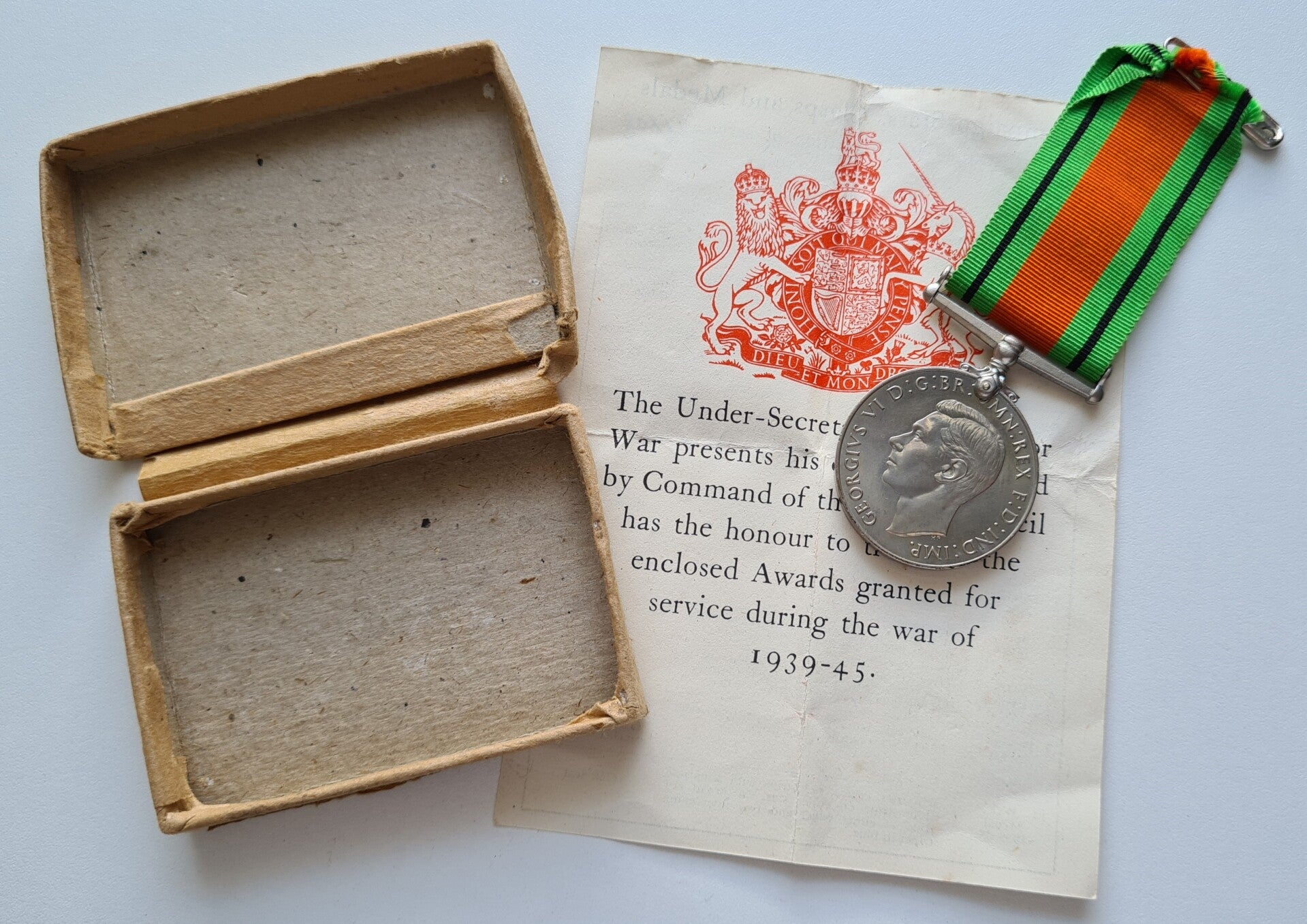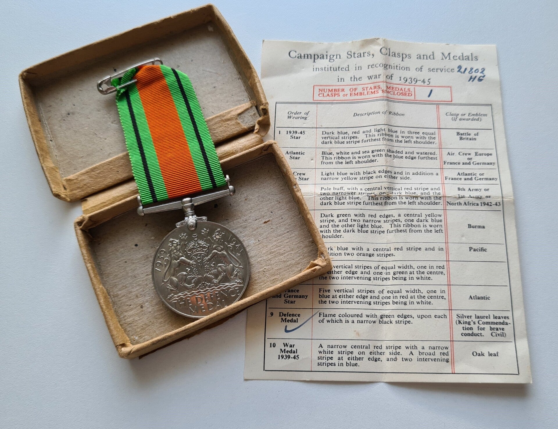 WW2 British Defence Medal awarded to a member of the Home Guard with box