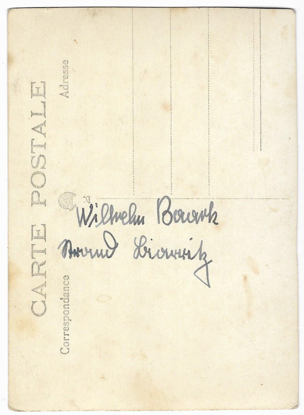 The back of this photograph is described with a text from which 1 name emerges starting with ‘Wilhelm Ba....’ It is not clear to read exactly what it says.