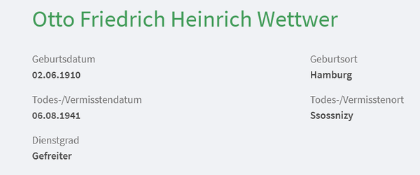 This is the estate of the fallen Gefreiter: Otto Friedrich Heinrich Wettwer.