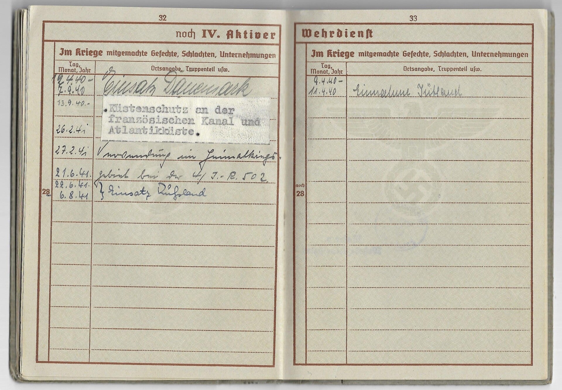 Born on 2 June 1910 in Hamburg, Otto was drafted as a conscript in 1938 and his active service then started in February 1940. From then on, he would become involved in the attack on Denmark and the occupation of Jutland. The album therefore includes many photos of this. After his stay in Denmark, he was transferred to France in September 1940, where he would become part of the 4.(MG)-Kompanie Inf. Regiment 502 in charge of defending the Atlantic coast. Again, many photos of this are included in the album.