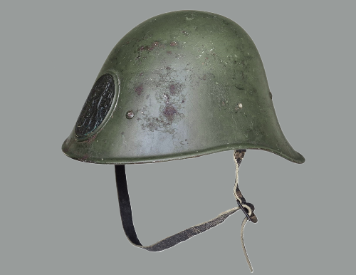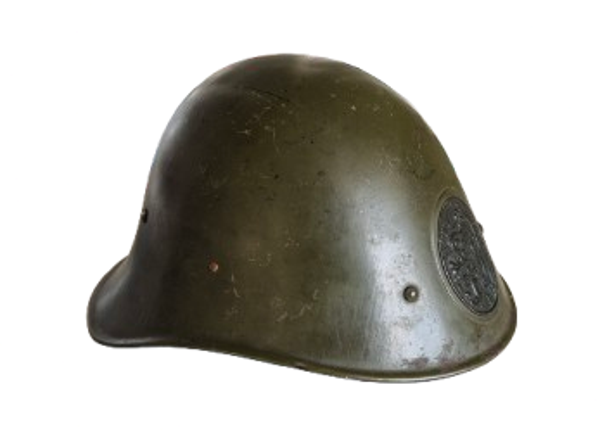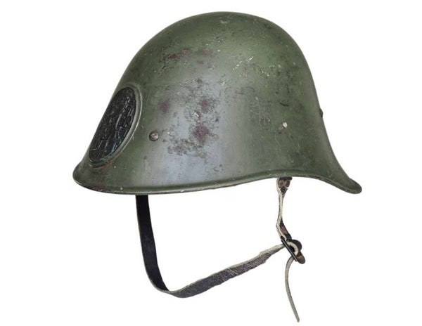 This M-34 helmet is fully complete including interior and chin strap. The helmet has the usual traces of age.