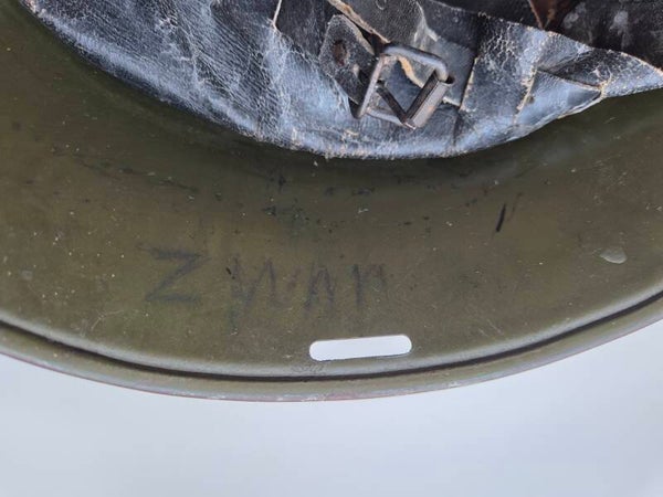 Presumably, this helmet was owned by a Dutch soldier with the surname 'Zwan'.