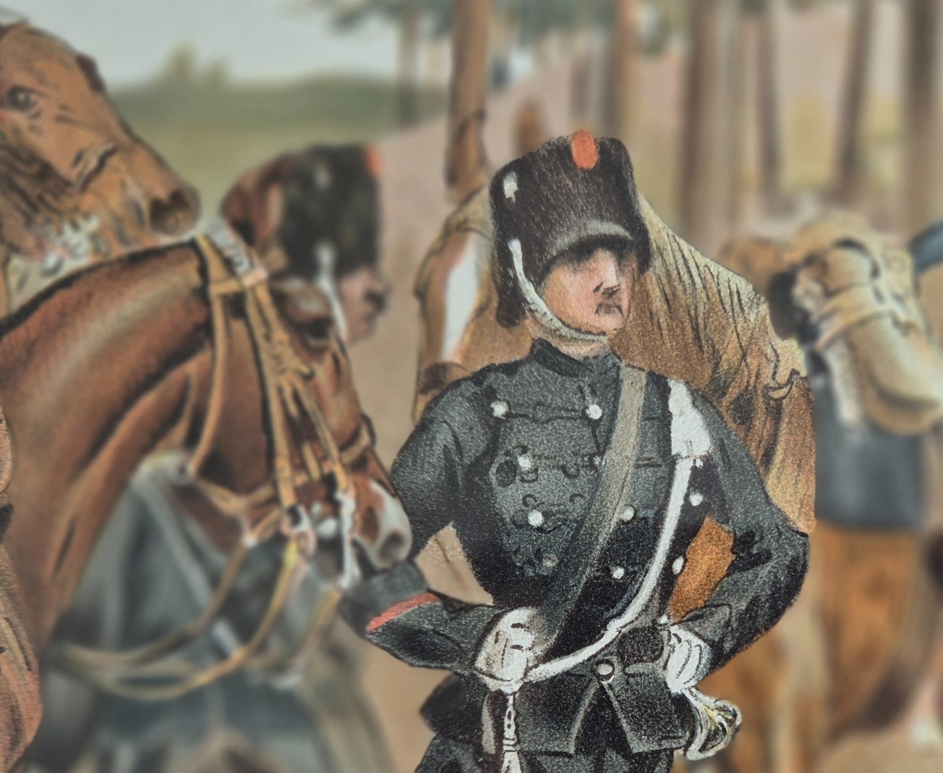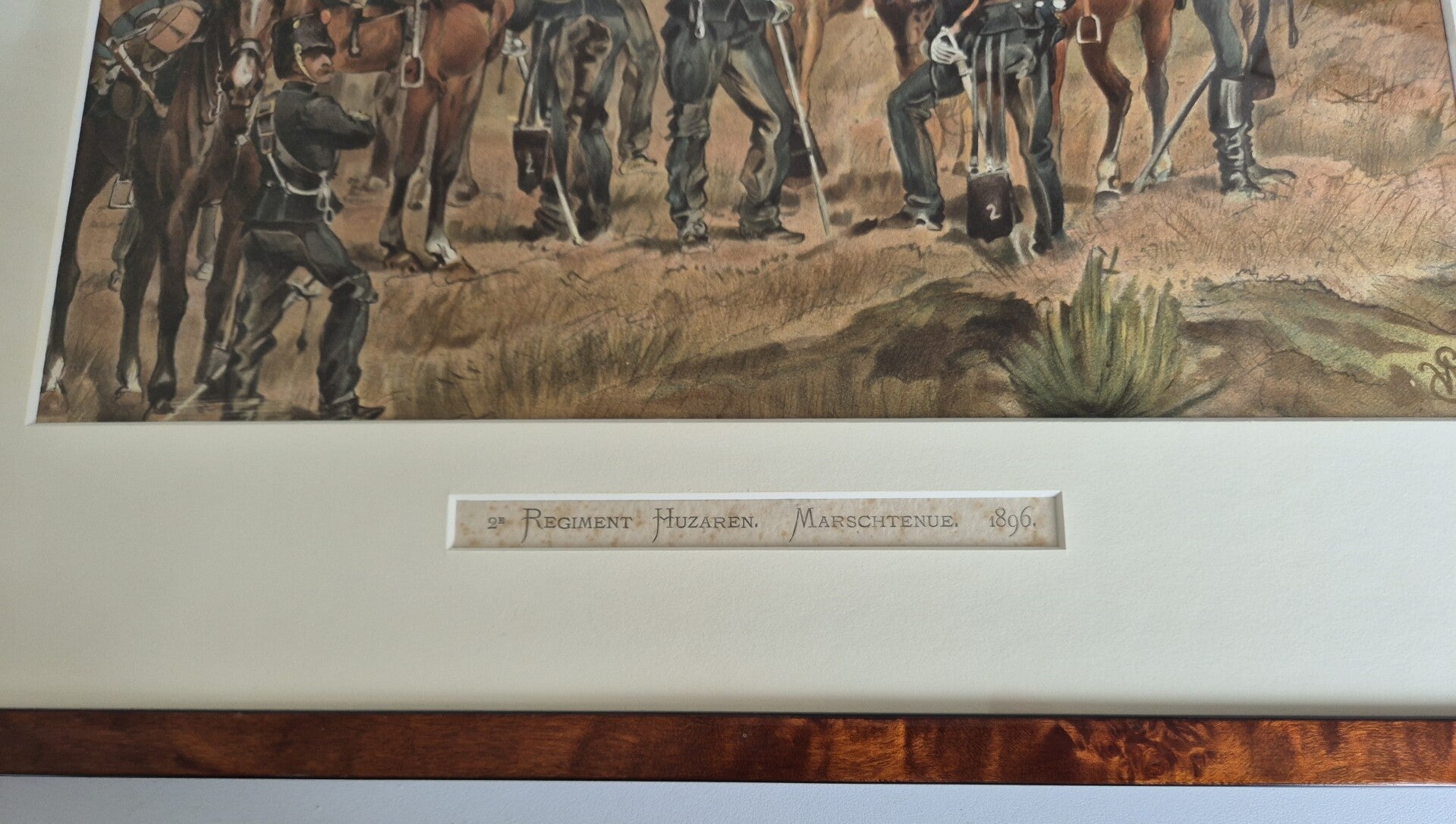 The old print is completely original and is in very good condition. The watercolour has fine details and the frame is nicely closed.