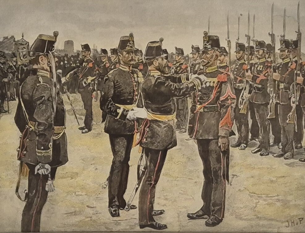 Around 1875, everyday soldier life took the place of romanticised and heroic battle scenes such as the Battle of Waterloo (1815) and the Belgian Revolt (1830-1839). Leading painters of this innovative direction in patriotic painting were the young painters Isaac Israëls, George Hendrik Breitner, but especially Hoynck van Papendrecht. In turn, he and his teacher Charles Rochussen worked with officers Willem Constantijn Staring and Nicolaas van Es on realistic illustrations for news magazines such as Elsevier and Eigen Haard, making the military genre known to a wide audience.