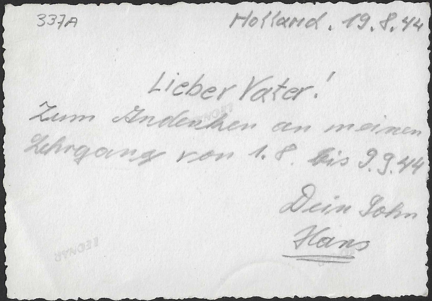 There is some writing on the back of this photograph.It is a short tribute from a son to his father, written in 1944.