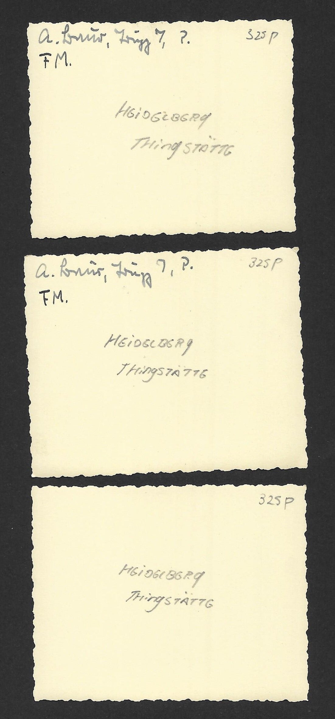 All three photographs are described on the reverse.