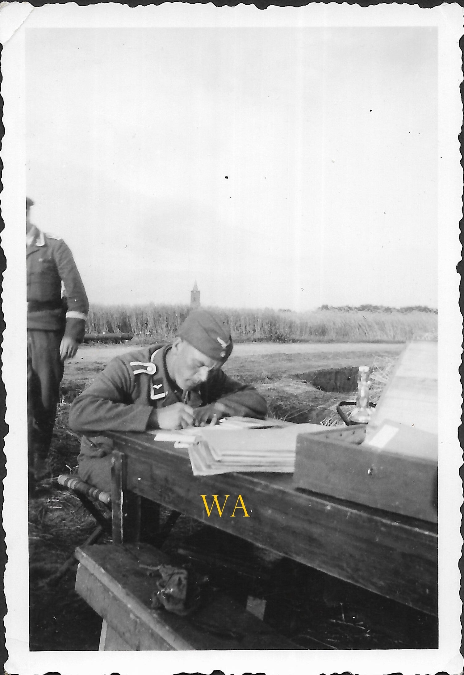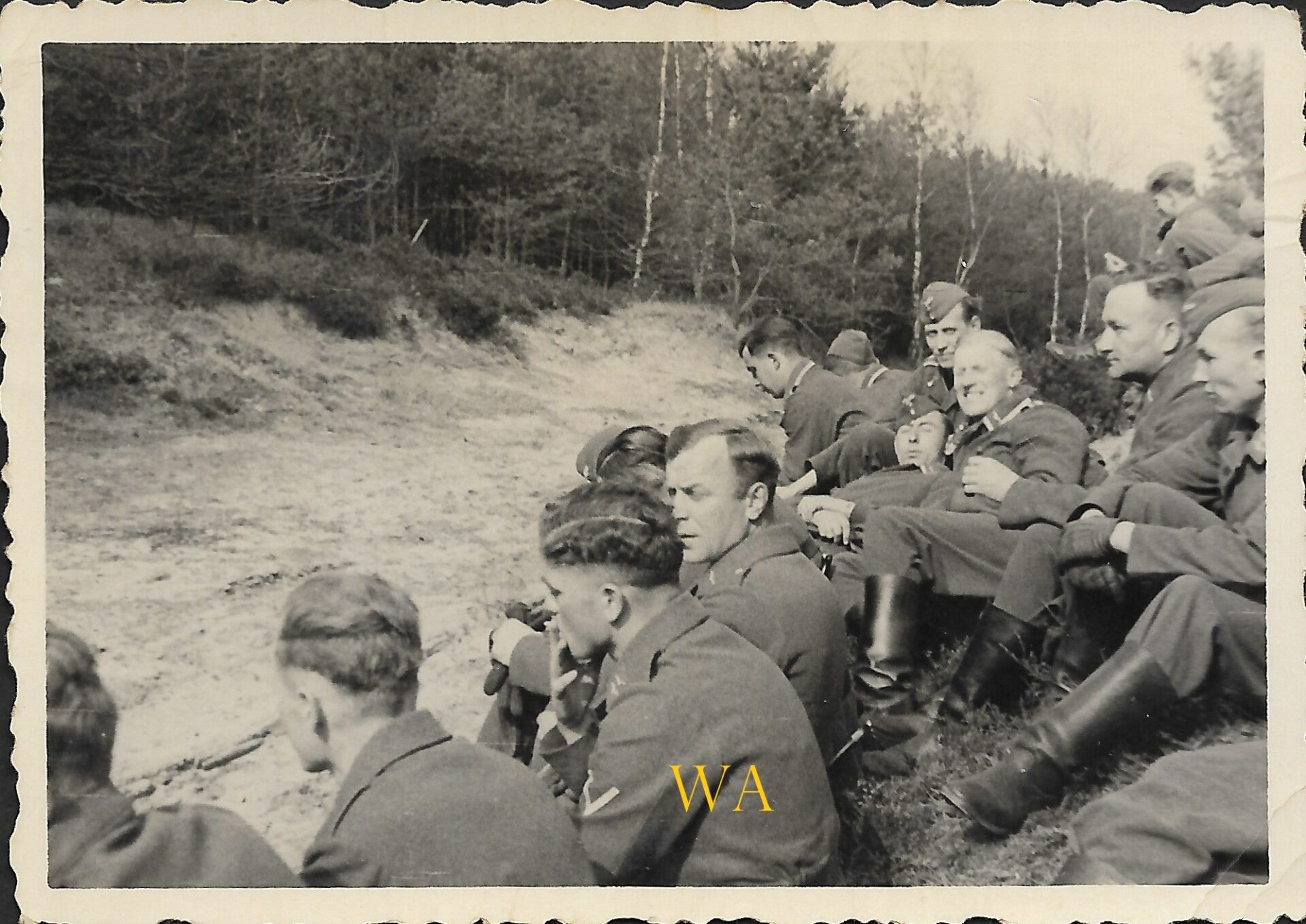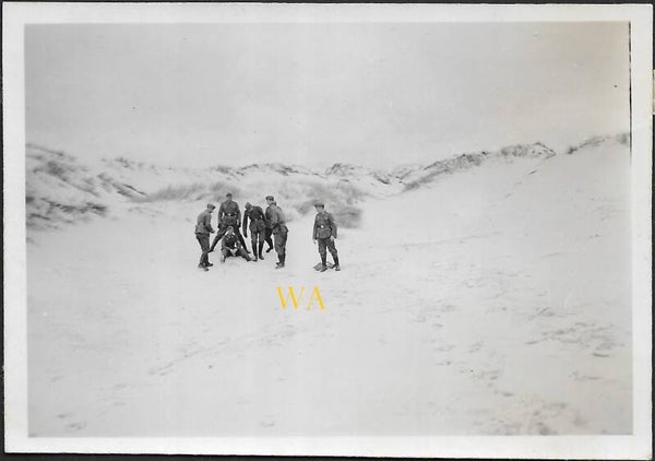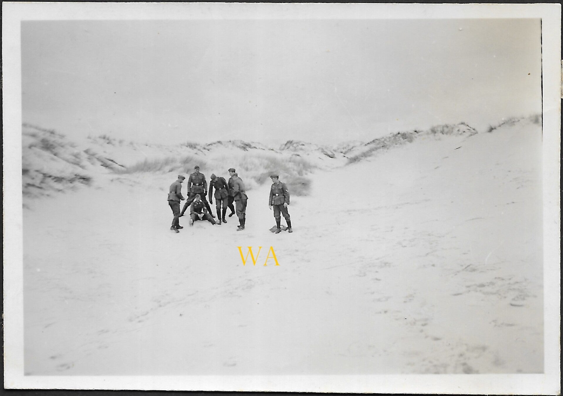 The photographs come from a single collection and all belong together. We were unable to determine the exact location, but it is likely to be the coast or dune areas in Friesland, North Holland or South Holland. One of the photographs shows a typical Dutch church with very unusual features. Another photograph shows a German soldier wearing a Dutch helmet.
