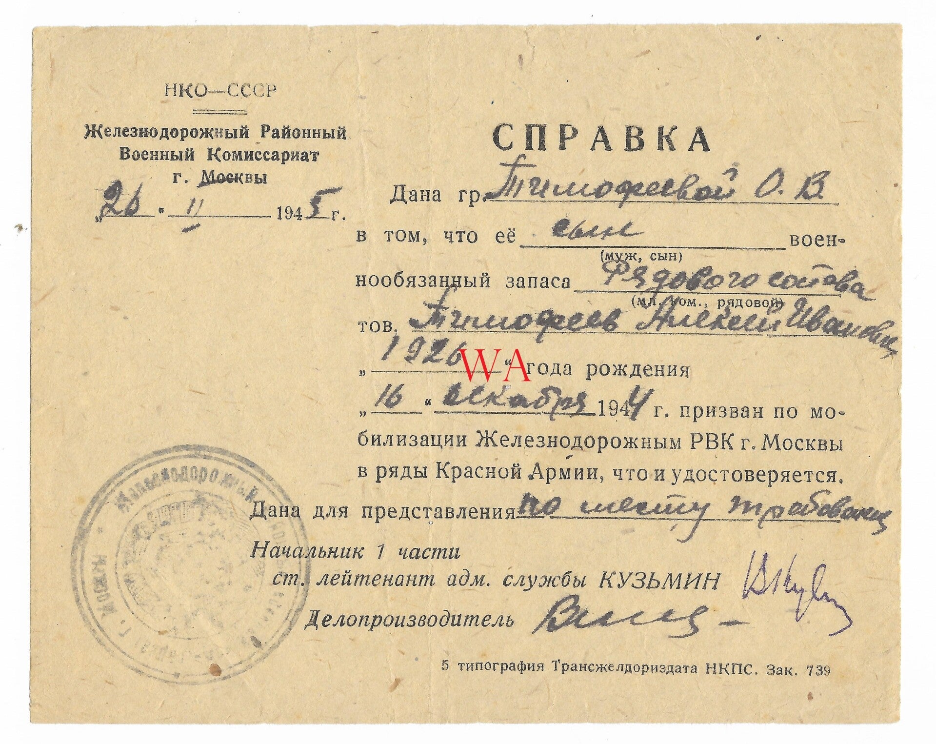 Alexej himself was born in 1926 and would soon serve in the Red Army.