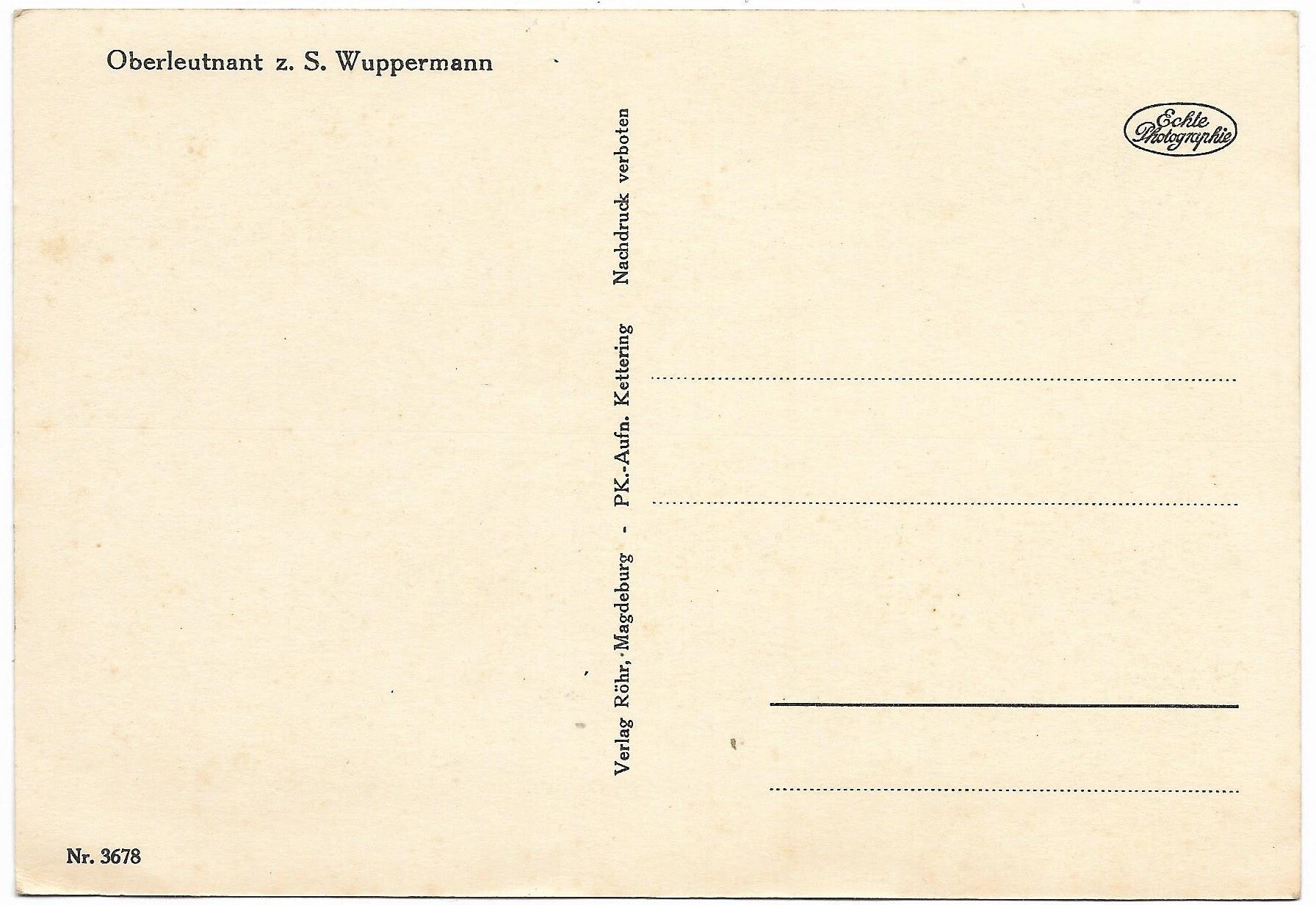 Postcard 'Ritterkreuzträger' Oberleutnant z. S. Wuppermann