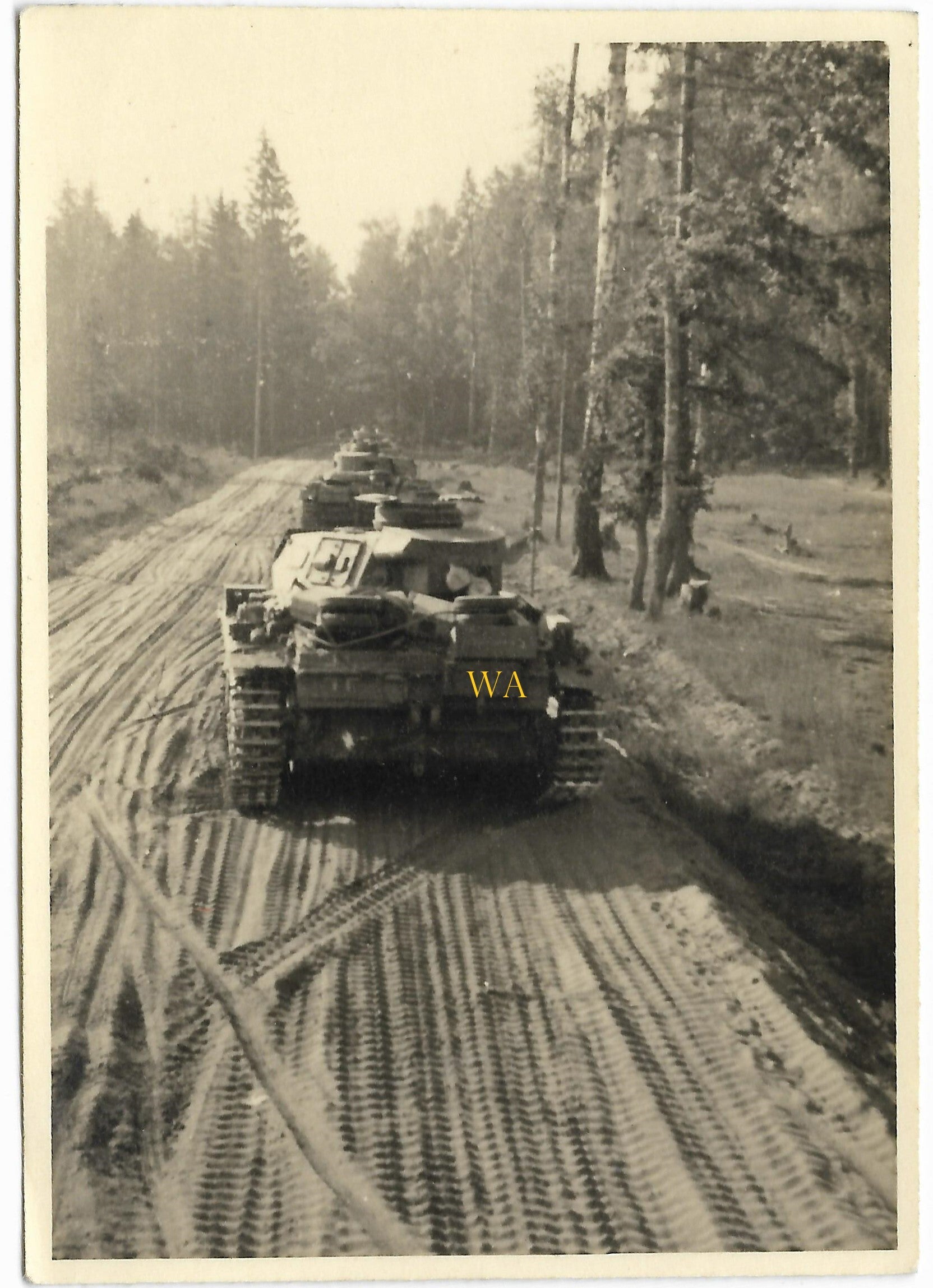 Panzerkampfwagens III through the forest in colonne