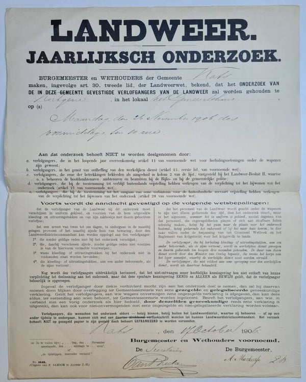 1x an announcement of the annual survey of the so-called 'Landweer' from 1906.