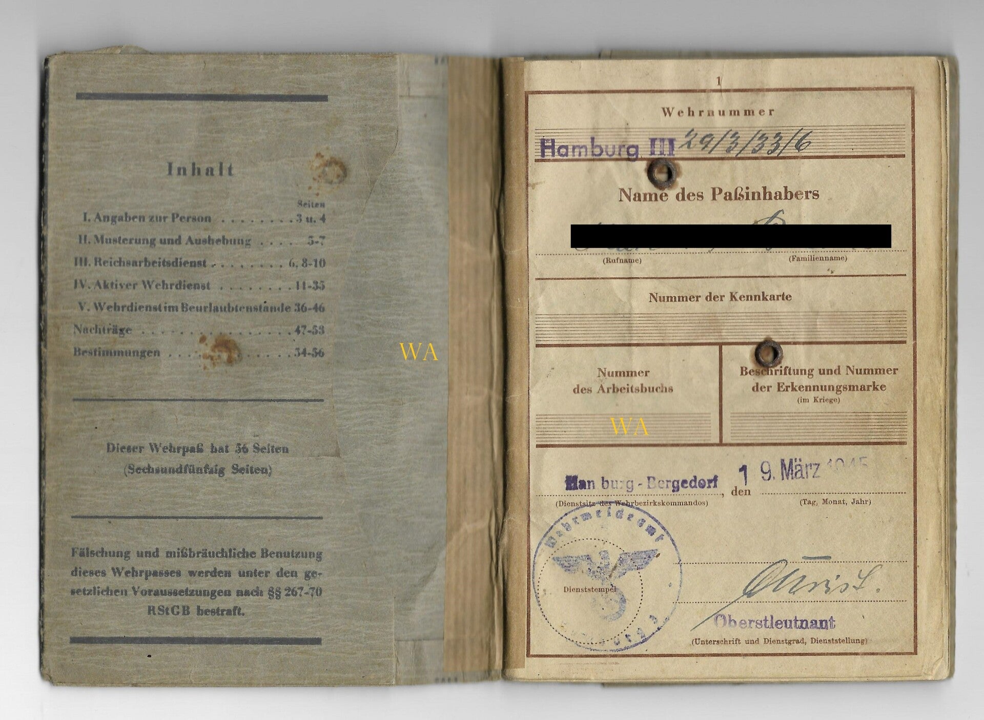 This is a Wehrpass of a 15-year-old boy from Hamburg.