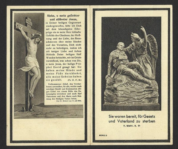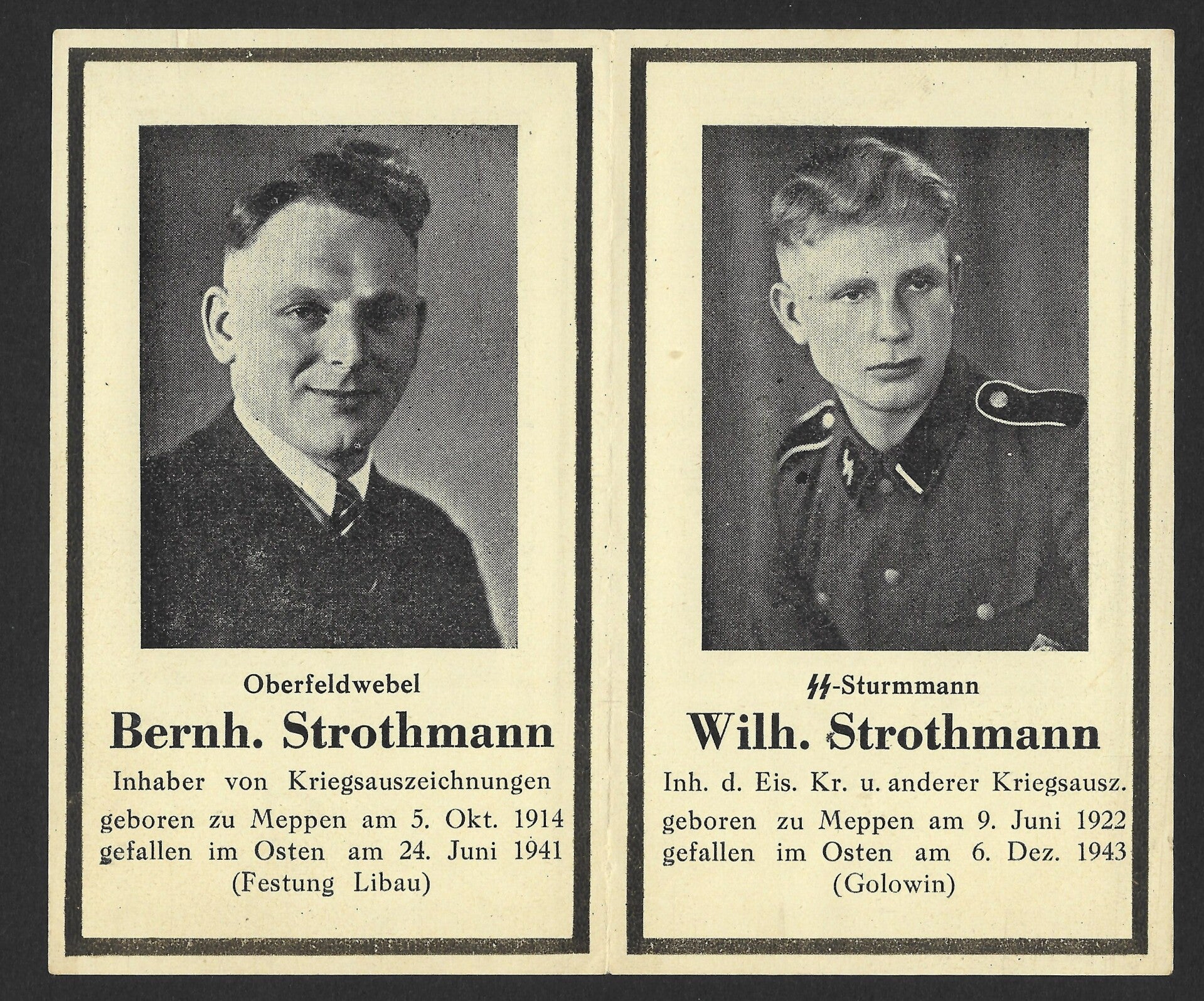 Prayer card of 2 brothers, one of whom served in the Waffen-SS.