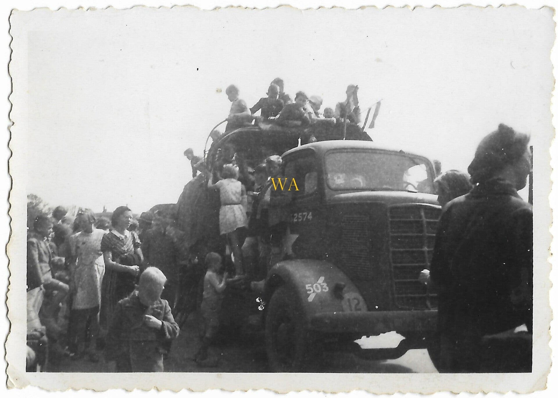 US armytruck at liberation in Holland with locals.