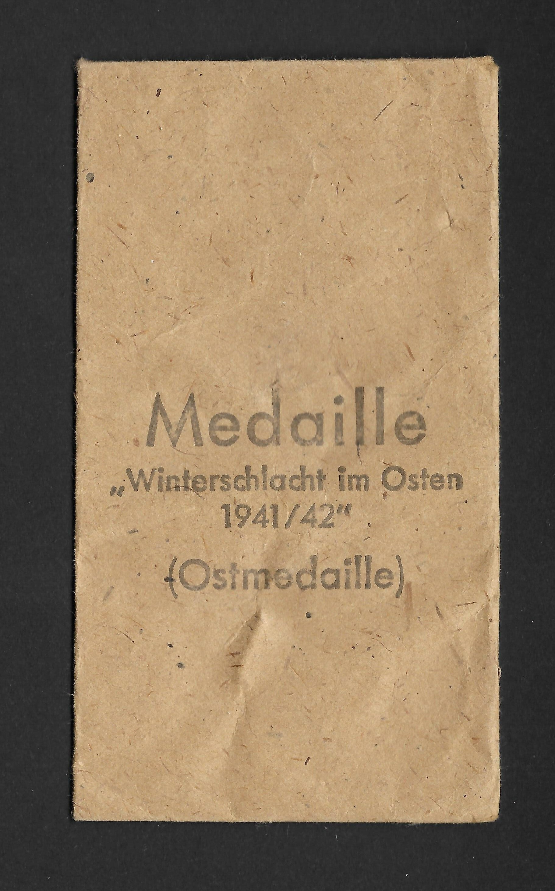 'Verleihungstüte zur Medaille Winterschlacht im Osten 1941-1942'.