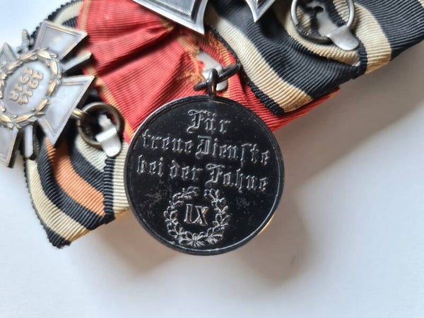 WWI Medalbar with Iron Cross second class and Dienstauszeichnung 3.Klasse 1913 für 9 Jahre