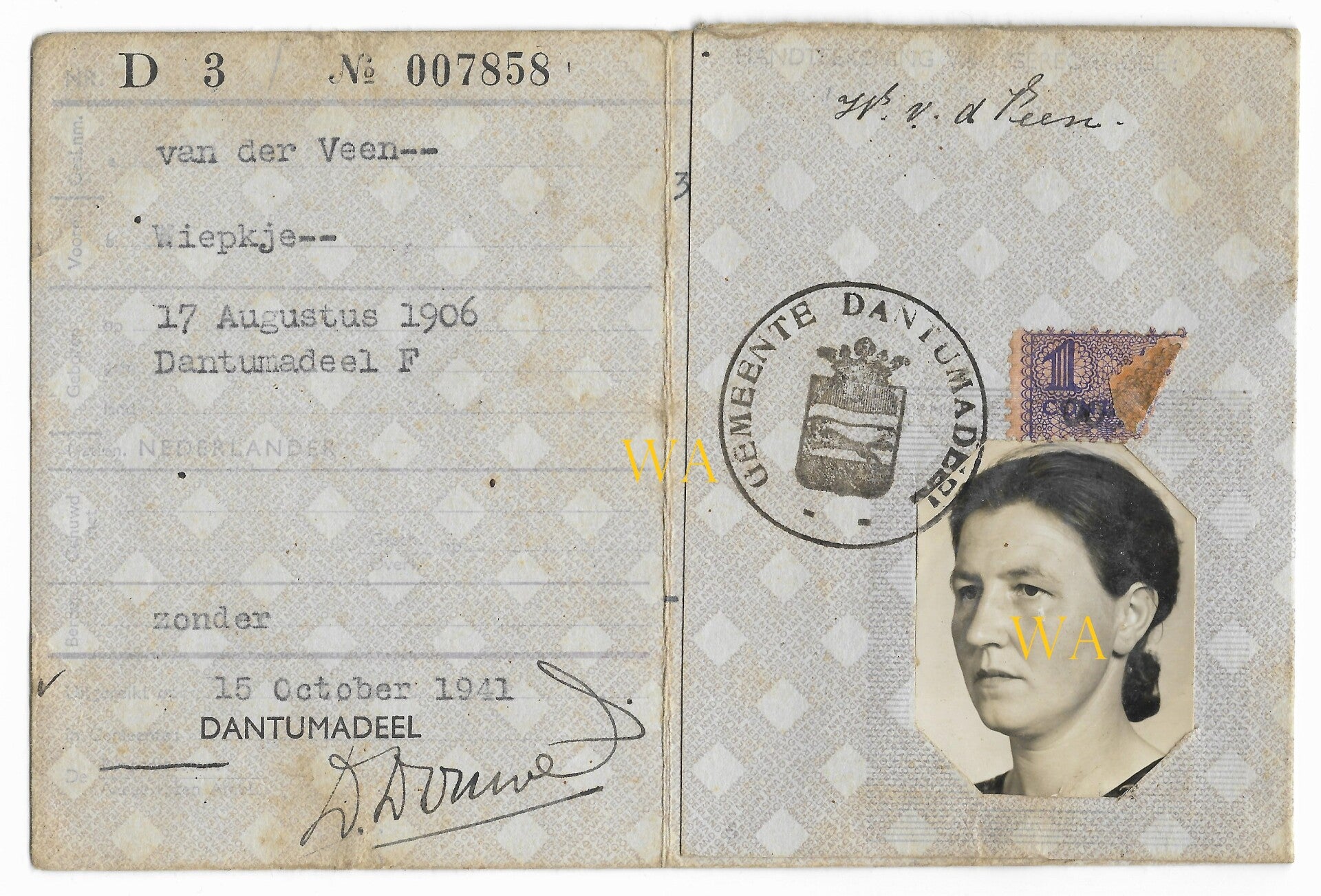 Dutch identity card with photograph (Friesland).