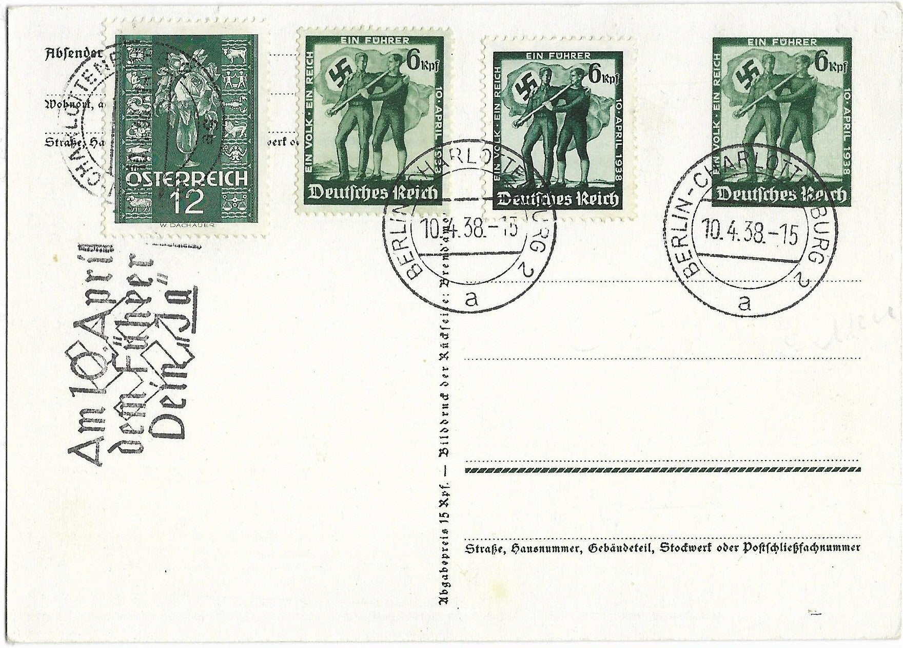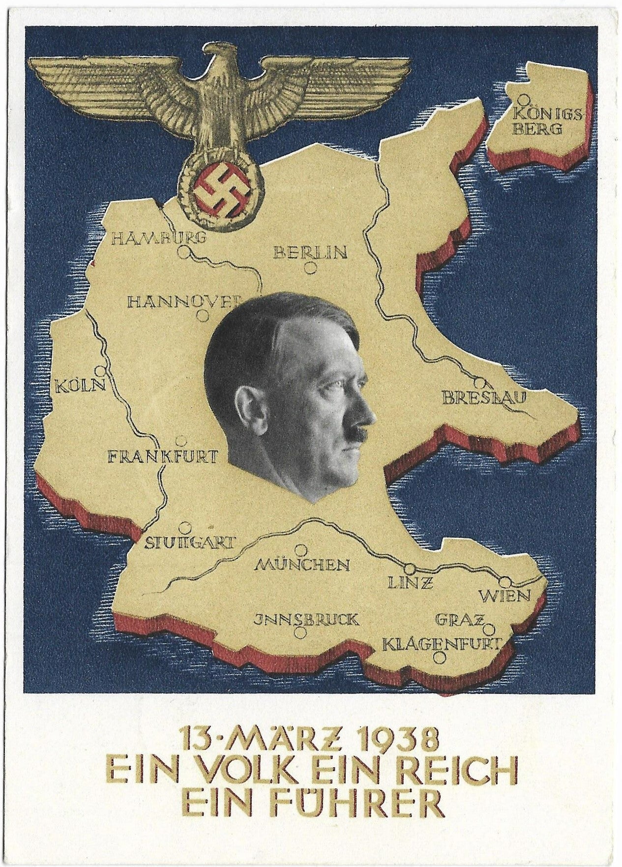 Postcard : 'Anschluss Austria - 13 March 1938'.